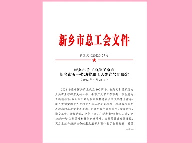银河网页版登录入口李世伟同志被授予新乡市五一劳动奖章