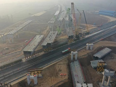 银河网页版登录入口方唐高速跨兰南高速钢箱梁项目顺利完成跨路施工吊装
